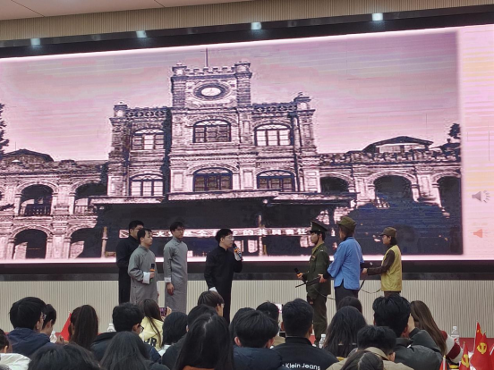大赛以歌、舞、剧、朗诵等多种艺术形式展现,开场曲《秦皇岛》激昂破题,话剧《破晓》触达历史温度,舞蹈《燃动青春,追光逐梦》与小品《一堂家门口的党课》分别诠释青春活力与具象初心;随后《少年意气,紫荆芳华》《与党同行,青春绽放》以咏唱与朗诵传递青春向党之情,中场舞蹈《Toxic》调节节奏,《赤子吟,觉醒年代》朗诵更引全场跟诵;下半场《我爱你中国》合唱升华爱国情怀,小品《十上无难事》、话剧《花山映绣》彰显基层担当,最终相声《我爱读书》以幽默收尾。这场充满青春活力与红色情怀的活动,不仅让现场观众沉浸式感受到了百年党史的温度,更在年轻心中播下了爱党爱国、勇担使命的种子,让青春的力量在红色传承里继续发光发热。