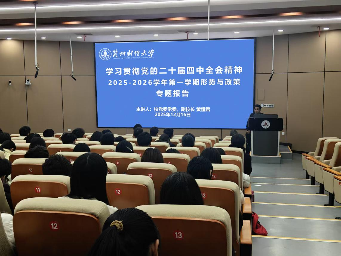 12月16日下午,校党委常委、副校长黄恒君在和平校区知行楼104学术报告厅为图书馆职工及信息工程与人工智能学院师生作形势与政策报告并宣讲党的二十届四中全会精神。