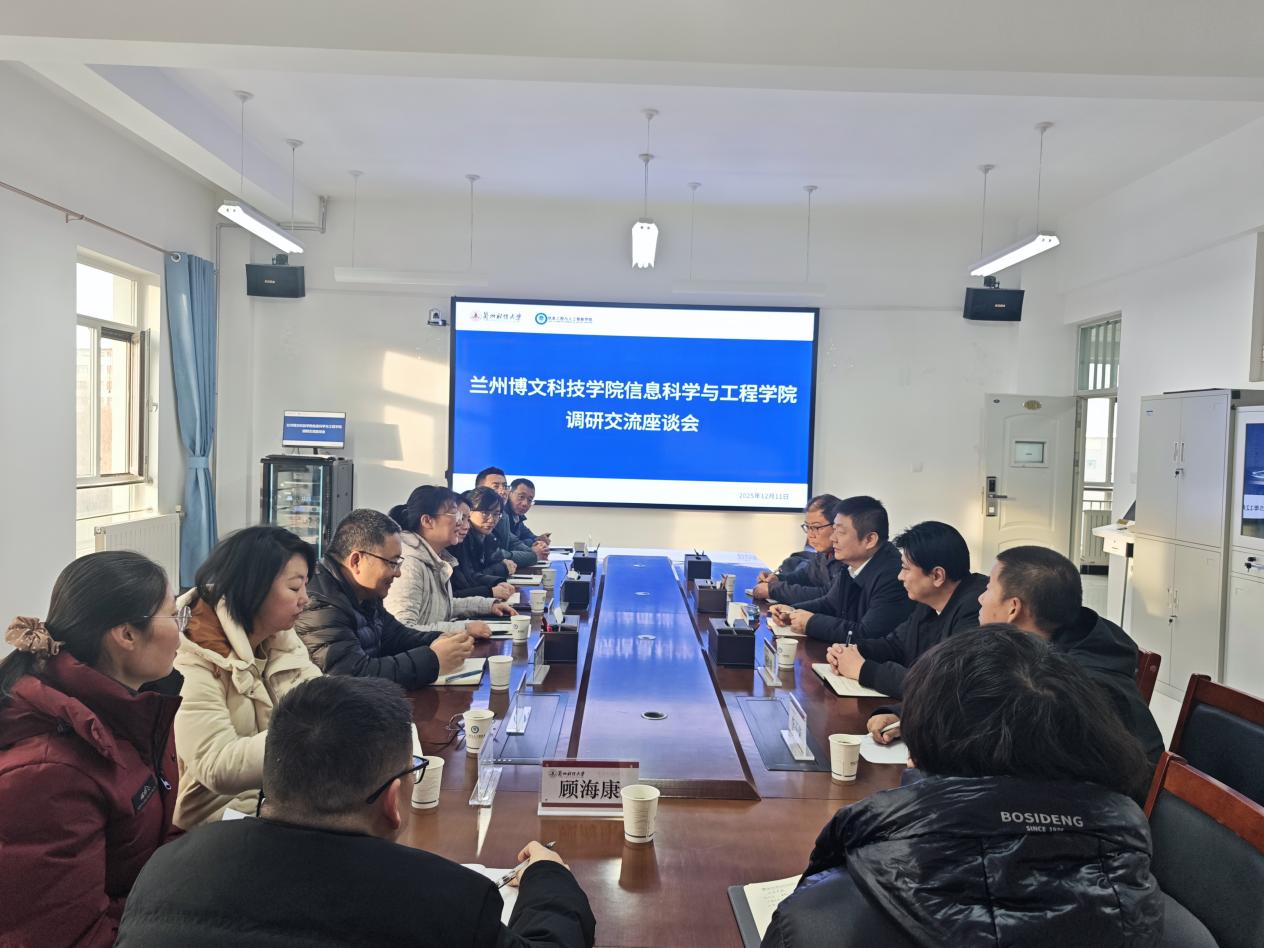 12月11日上午,兰州博文科技学院信息科学与工程学院院长江雪芸、副院长钟竟瑜,以及各教研室主任与骨干教师等共计10人,莅临我院进行交流学习活动。我院党委副书记、院长,甘肃省智慧商务重点实验室主任李强、甘肃省智慧商务重点实验室副主任杨佳澄,各教研室主任出席了座谈会。